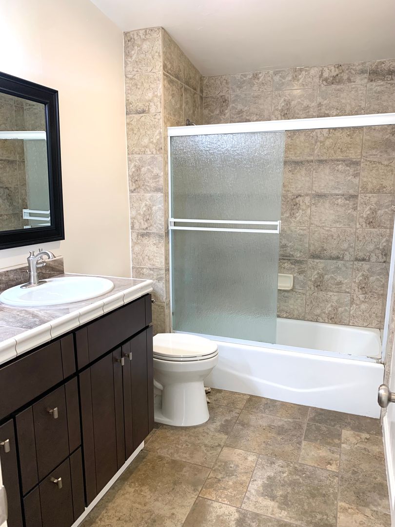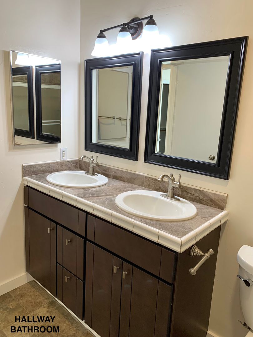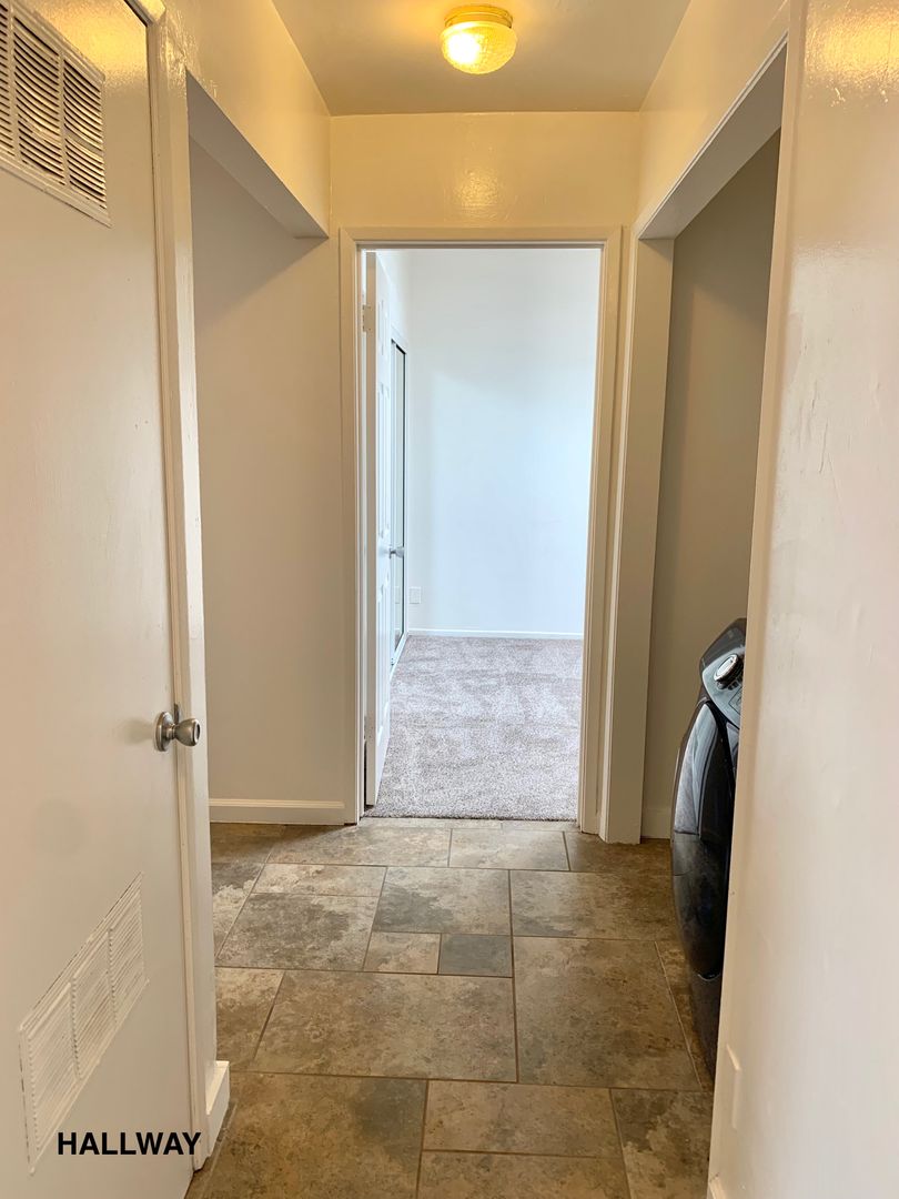 Tile flooring throughout the house, with new carpet in the bedrooms
